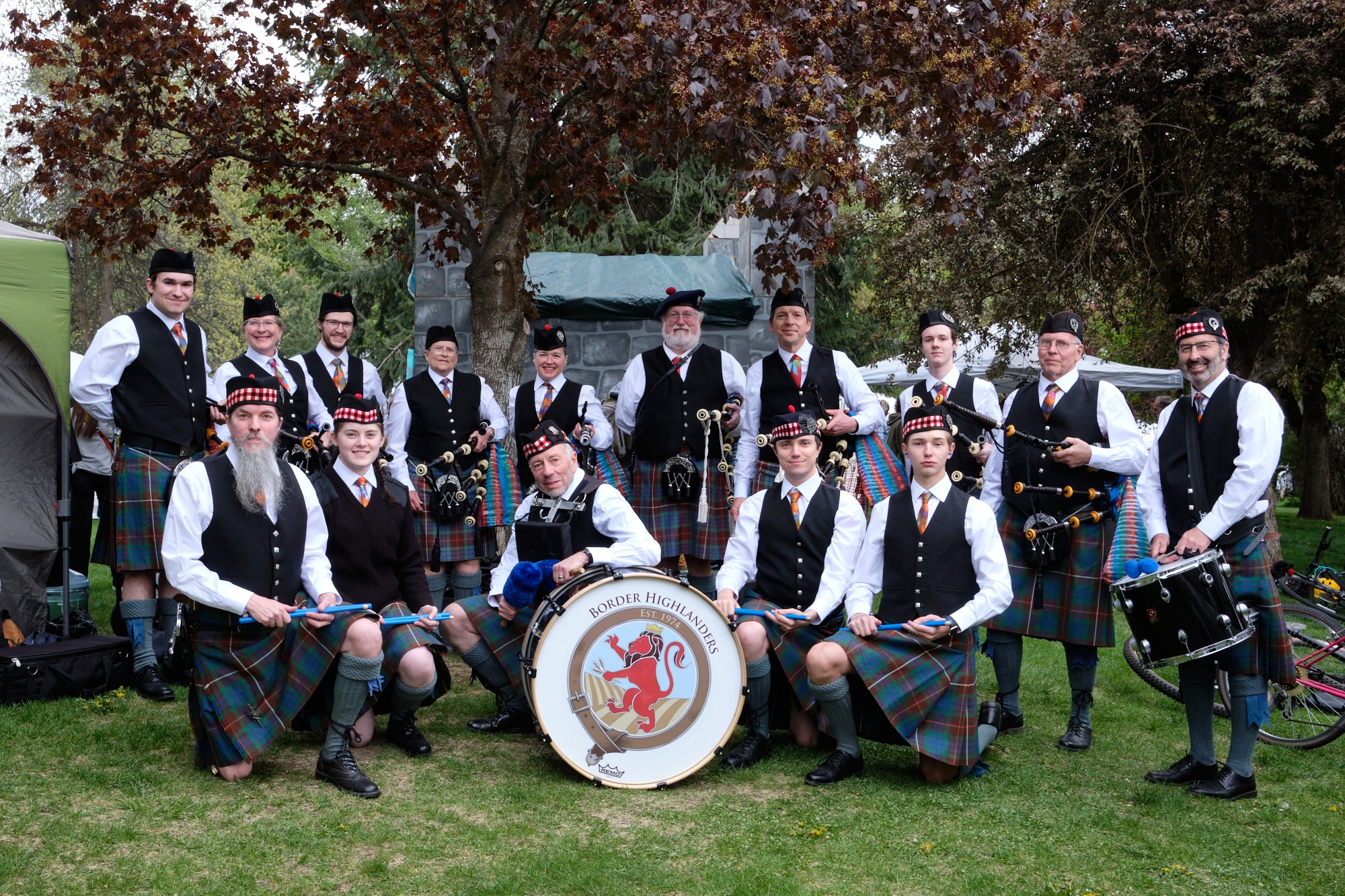 Since 1974, the pipes and drums of the Border Highlanders have provided Moscow, Pullman, and surrounding areas with Scottish Highland piping and drumming. We perform music for parades, weddings, funerals, and special events throughout the year, and each year in January the band hosts Moscow’s Robert Burns Dinner. We also act as the pipe and drum corps for the University of Idaho; when we’re acting in that capacity, we switch out our Fraser Hunting Ancient tartan for the bold colors of the Vandal Tartan.